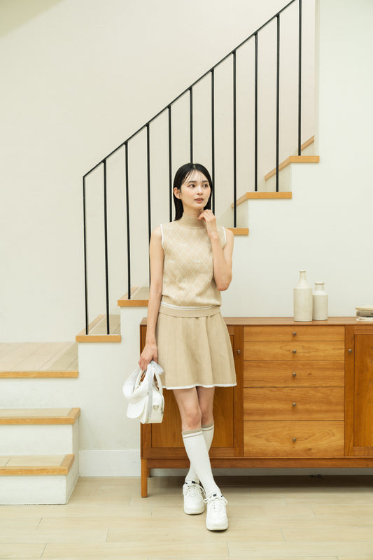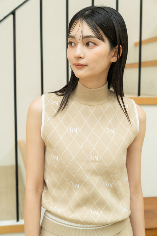 Logo Mock-neck Sleeveless Knit Beige