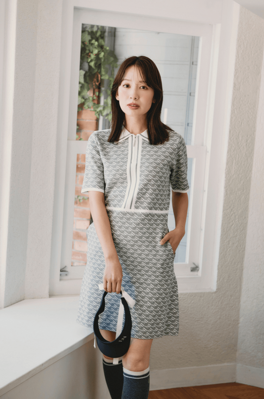 Logo zip one-piece gray