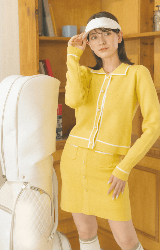 【ストレート】ニットスカート イエロー インナーパンツ一体型 ゴルフ