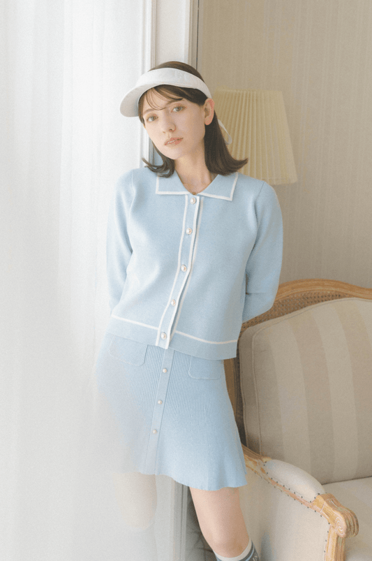【ストレート】ニットスカート ブルー インナーパンツ一体型 ゴルフ