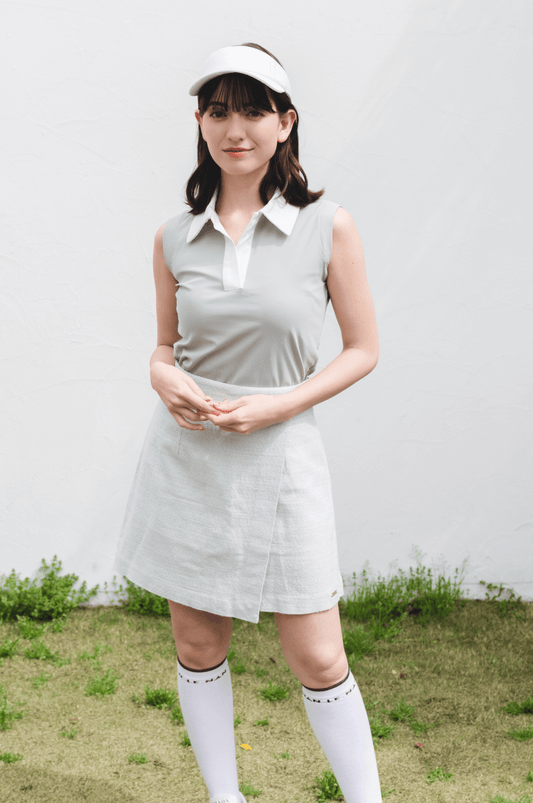 Side Striped Sleeveless Golf Dress BEIGE