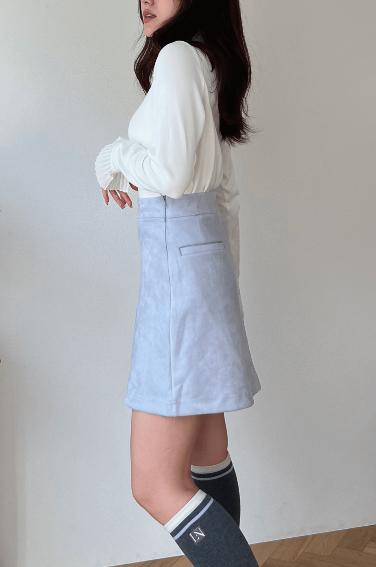 シンプルなラインのスカートですが、ハイウエストで程良いフレア感がスタイルアップを叶えてくれるアイテム。セットアップでの着用はもちろん、トップスをINでもOUTでもキレイなウエスト周りにお召しいただけます。